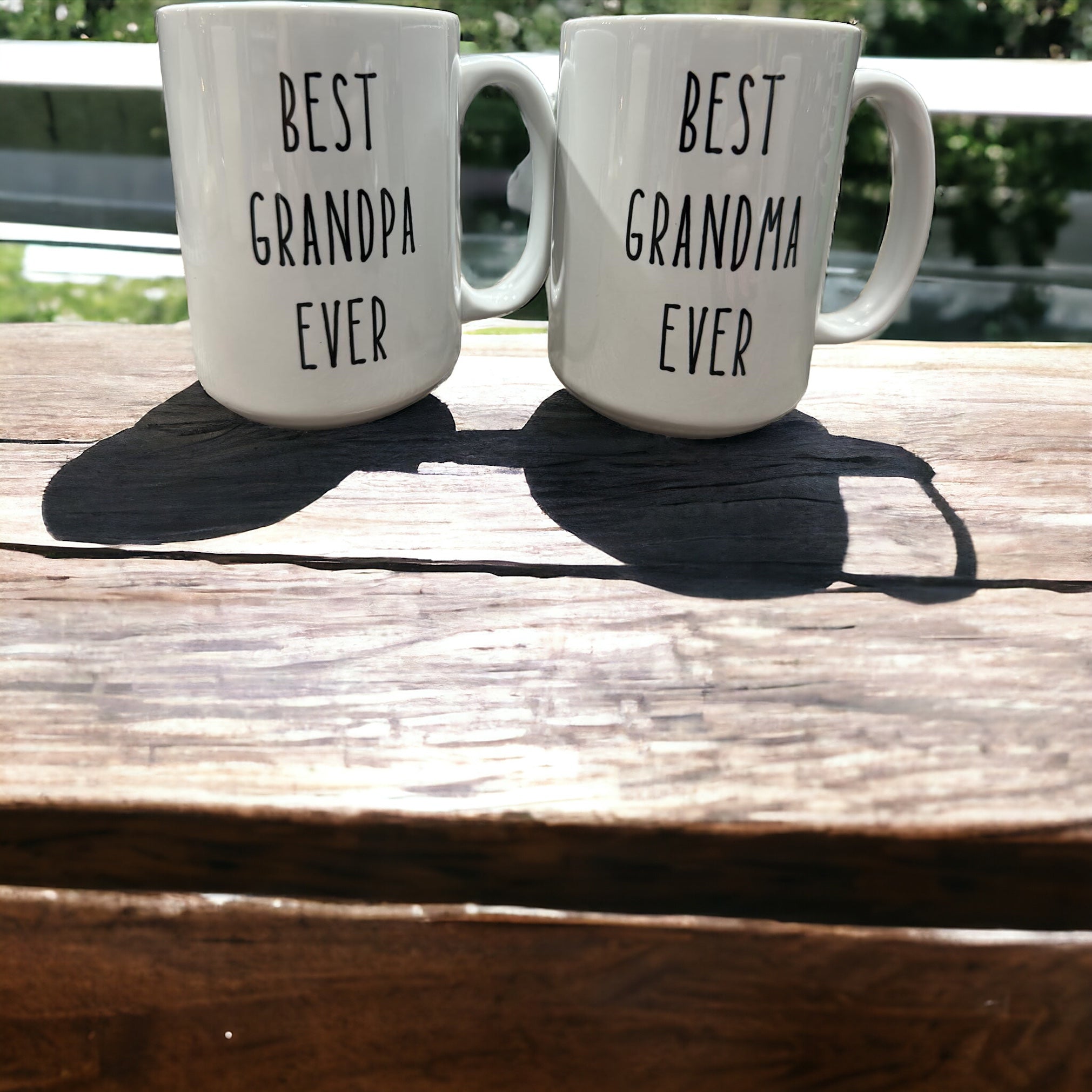 Celebrate the world’s greatest grandparents! Perfectly paired, one mug proudly declares “BEST GRANDPA EVER” and the other “BEST GRANDMA EVER” in bold, modern black lettering on classic white ceramic.