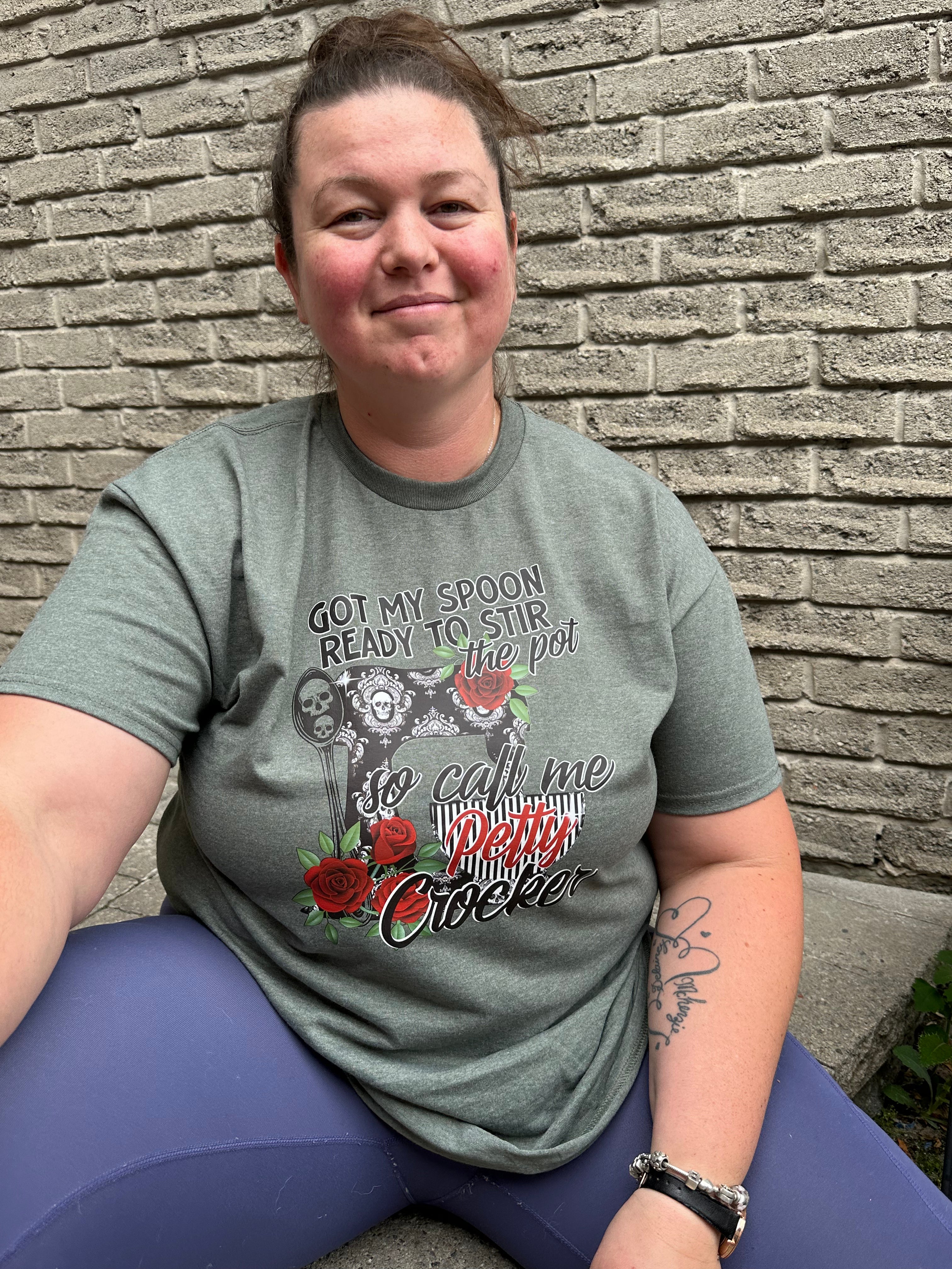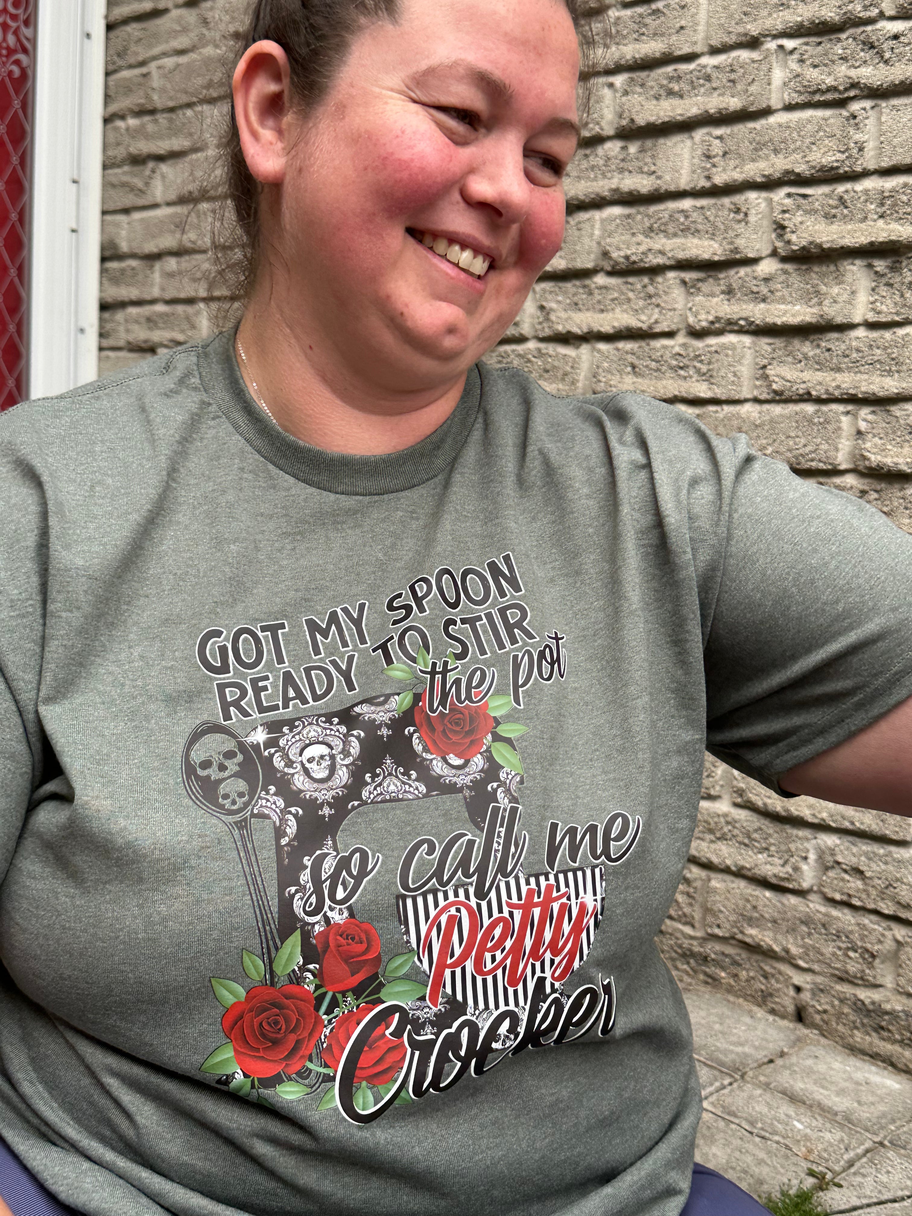 The Petty Crocker adult unisex t-shirt is perfect for the witty and sarcastic types! Made from a cotton-polyester blend, this top is not only soft and breathable, but it also fits comfortably on any body type. Show off your humor with this hilarious saying and playful design - feel the comfy-coziness and look fabulous!