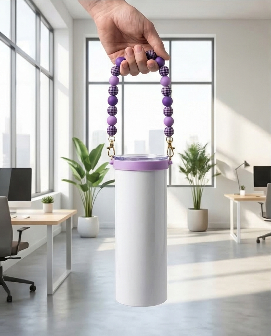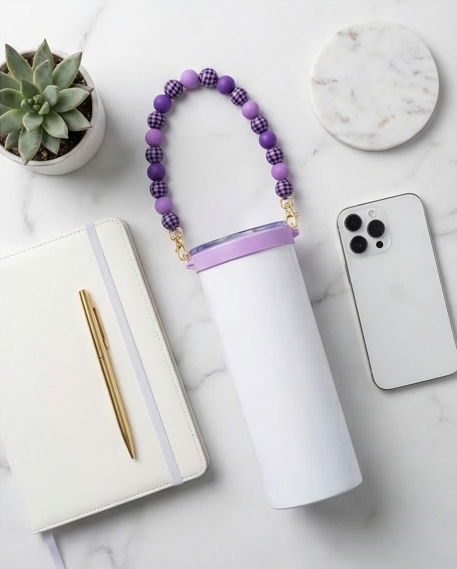 Purple Gingham Beaded Tumbler Strap